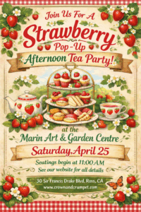 A monthly themed pop up will happen at The Marin Art & Garden Center starting in April as well as our annual Mother’s Day extravaganza and our Children’s Etiquette classes will commence there too. Standby for updates shortly!